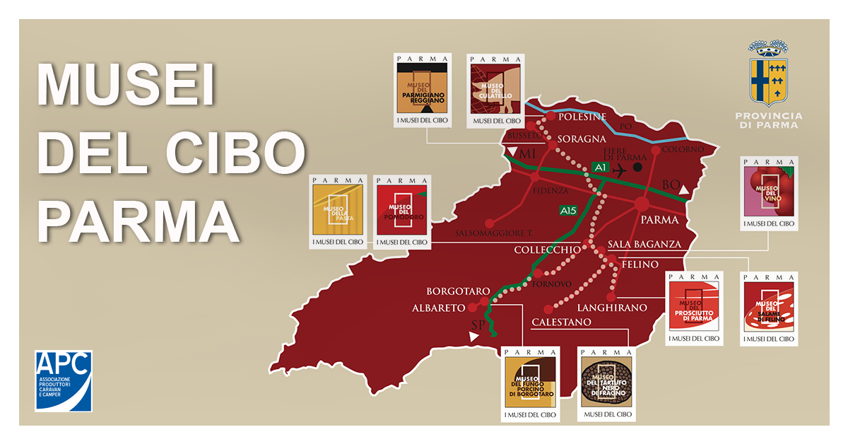 I Musei del Cibo si trovano sia a Parma che nella provincia e, proprio per questo, vi consigliamo di consultare qui la mappa delle diverse aree sosta che vi permetteranno di lasciare il vostro camper nella zona più vicina.